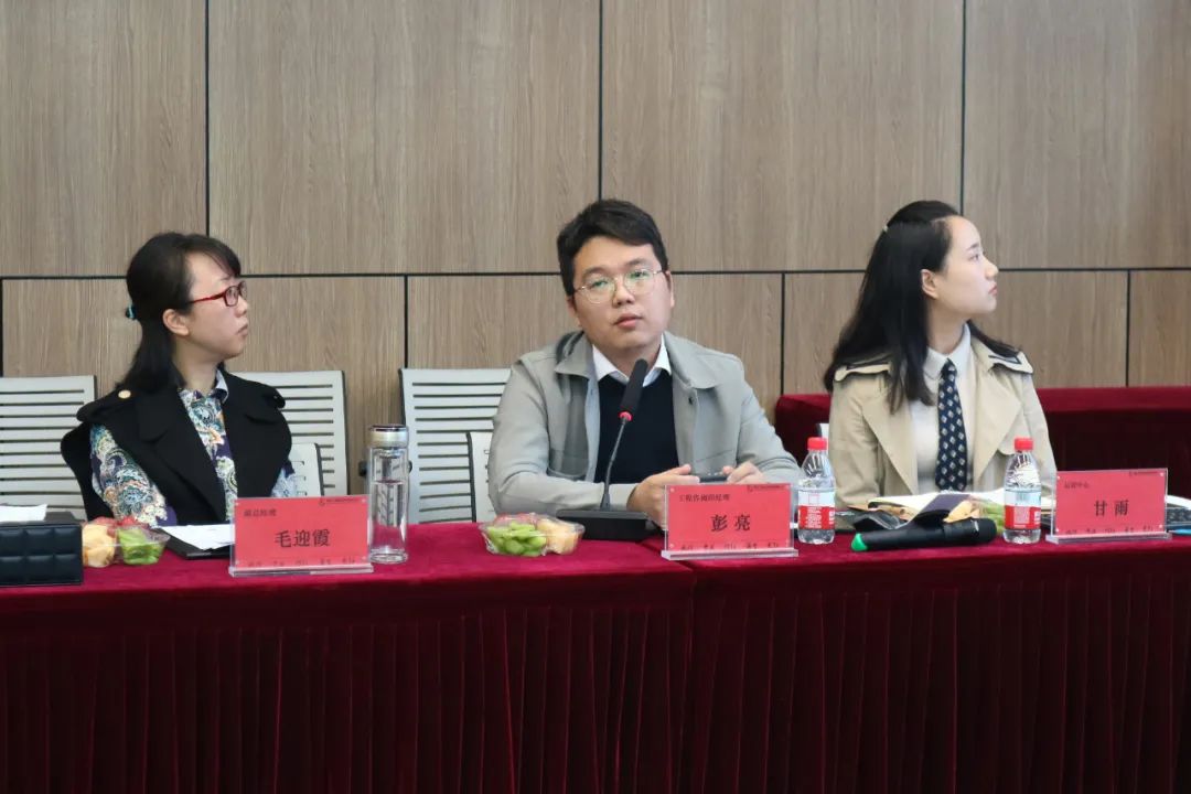 參觀結束后,在鼎正一樓珞珈會議室進行正式的調研座談,公司董事長王雁然、副總經理毛迎霞、副總經理姚建功、工程咨詢事業部經理彭亮及相關部門經理列席參加座談會。