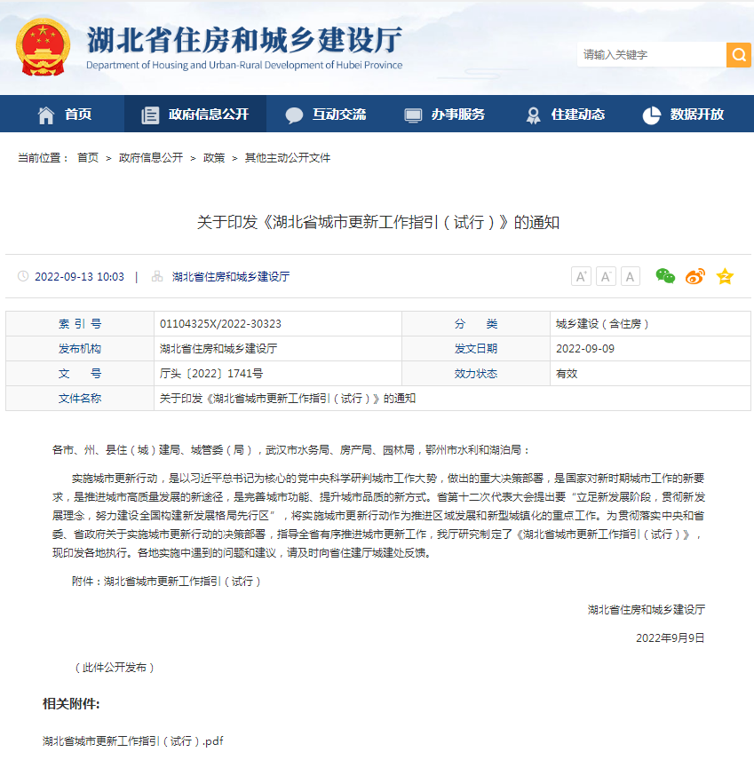 湖北省住建廳印發(fā)《湖北省城市更新工作指引(試行)》