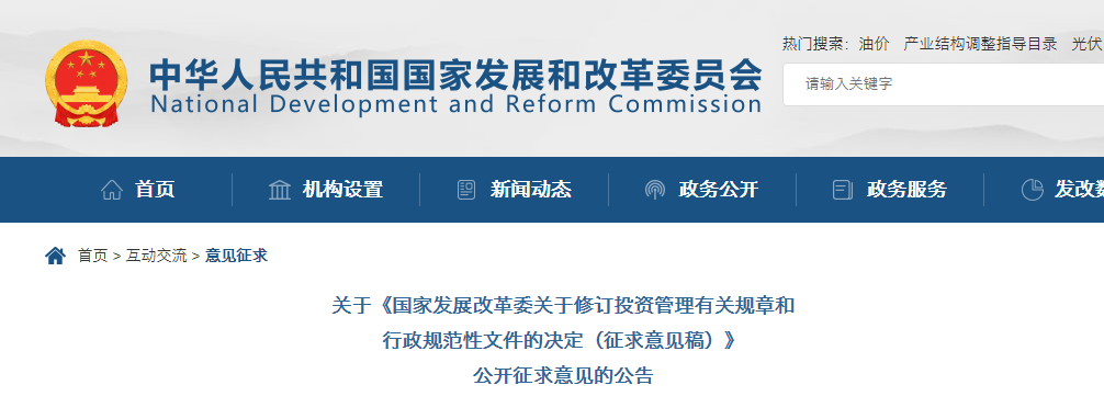5.國家發展改革委關于修訂投資管理有關規章和行政規范性文件的決定(征求意見稿)